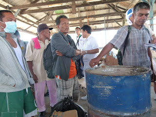 | Brgy. Calumpang barangay captain Reynaldo Salubre giving instructions to repatriates who are residents of barangay Calumpang. |